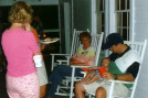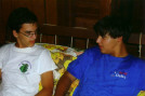 - Doug Powell '72 in t-shirt, Larry Jacobsen '78 in cap |